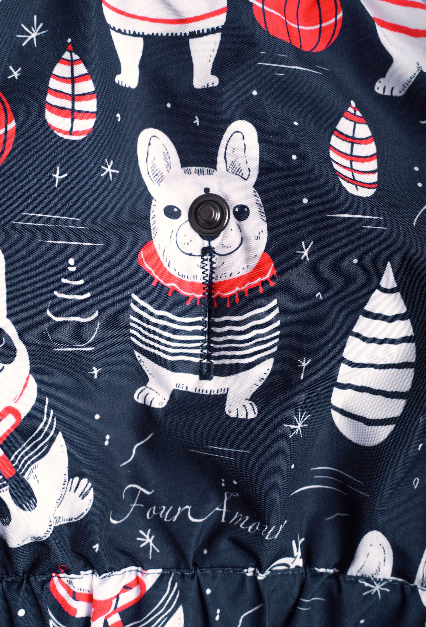 FOURAMOUR “Striped Chubby Dogs” İçi Polarlı Su Geçirmez Tulum eşsiz ve eğlenceli deseniyle dikkatleri üzerine çekerken, evcil dostunuzu yağmurlu günlerde ve soğuk kış mevsiminde sıcak ve kuru tutmak için özel olarak tasarlanmıştır. Bu tulum, hem stil sahibi bir görünüm sunar hem de köpeğinizin konforunu ve korunmasını sağlar.