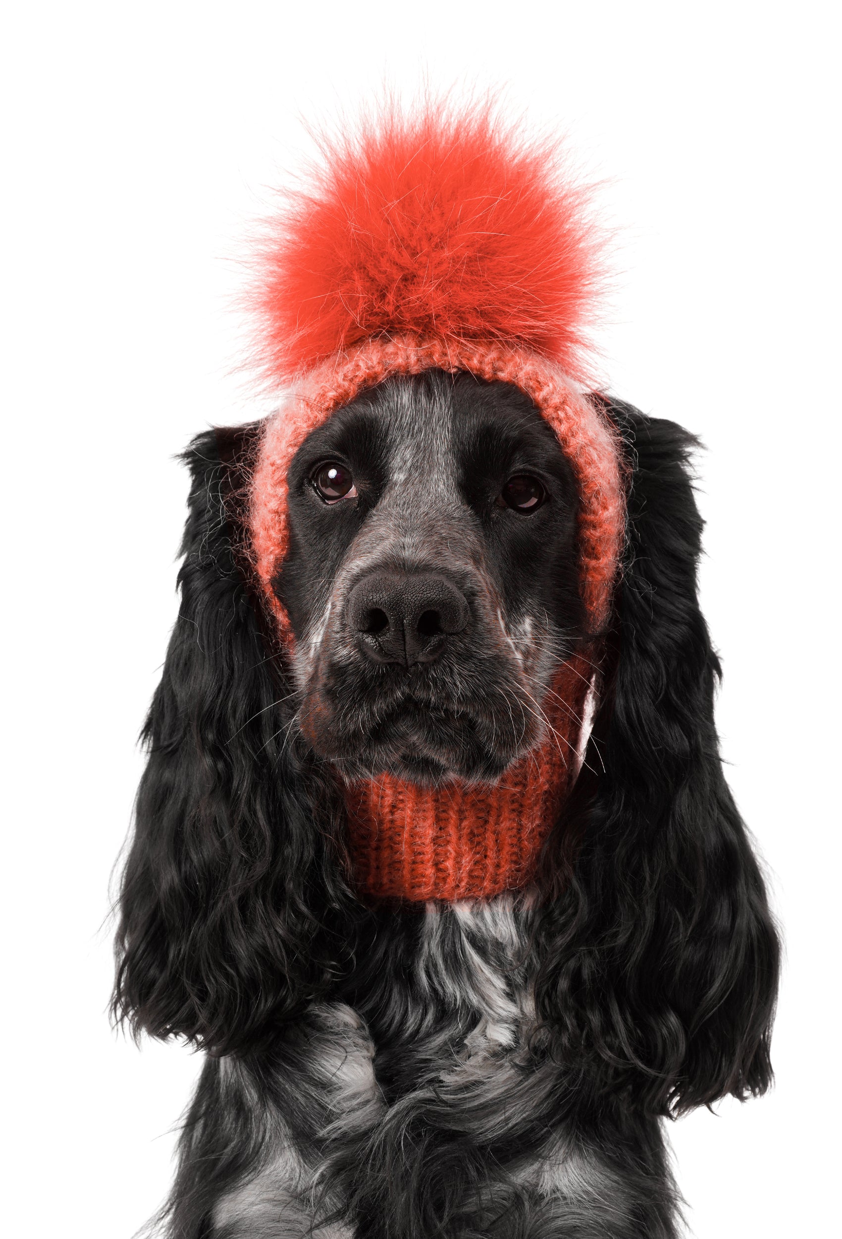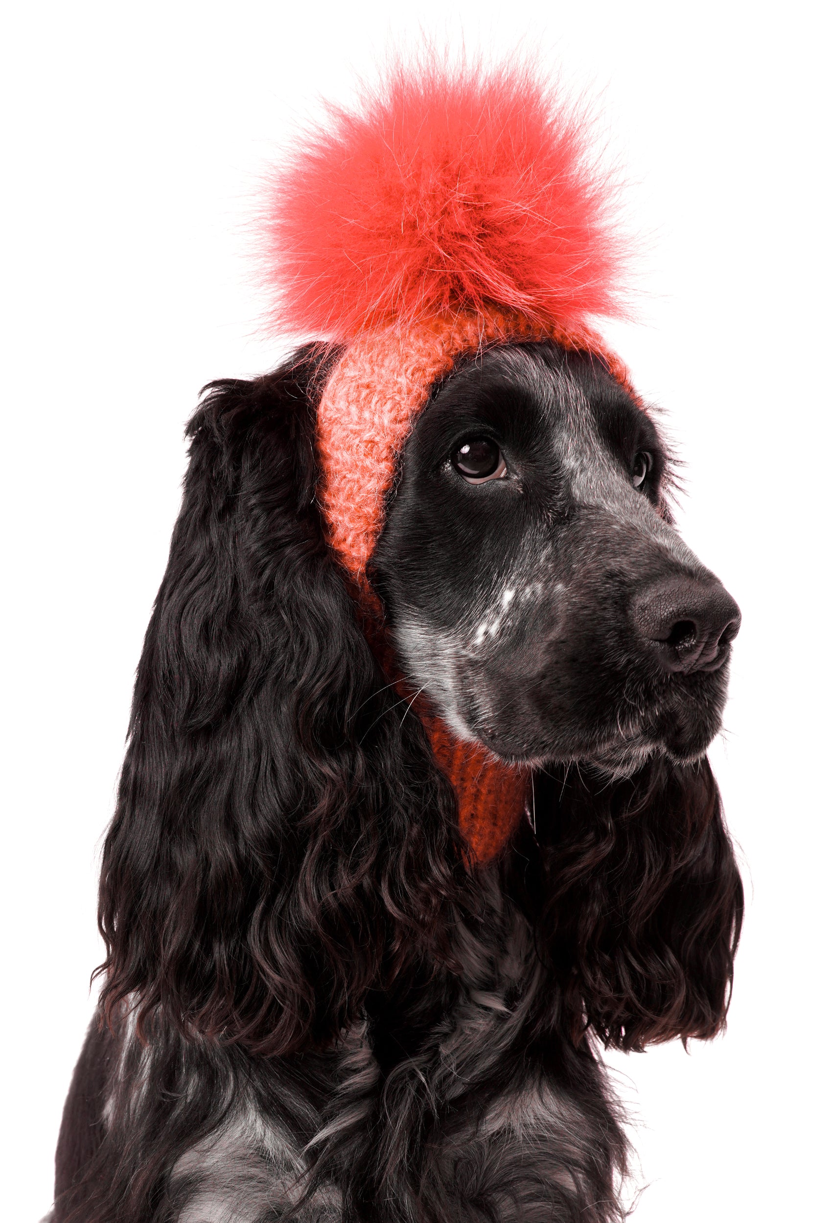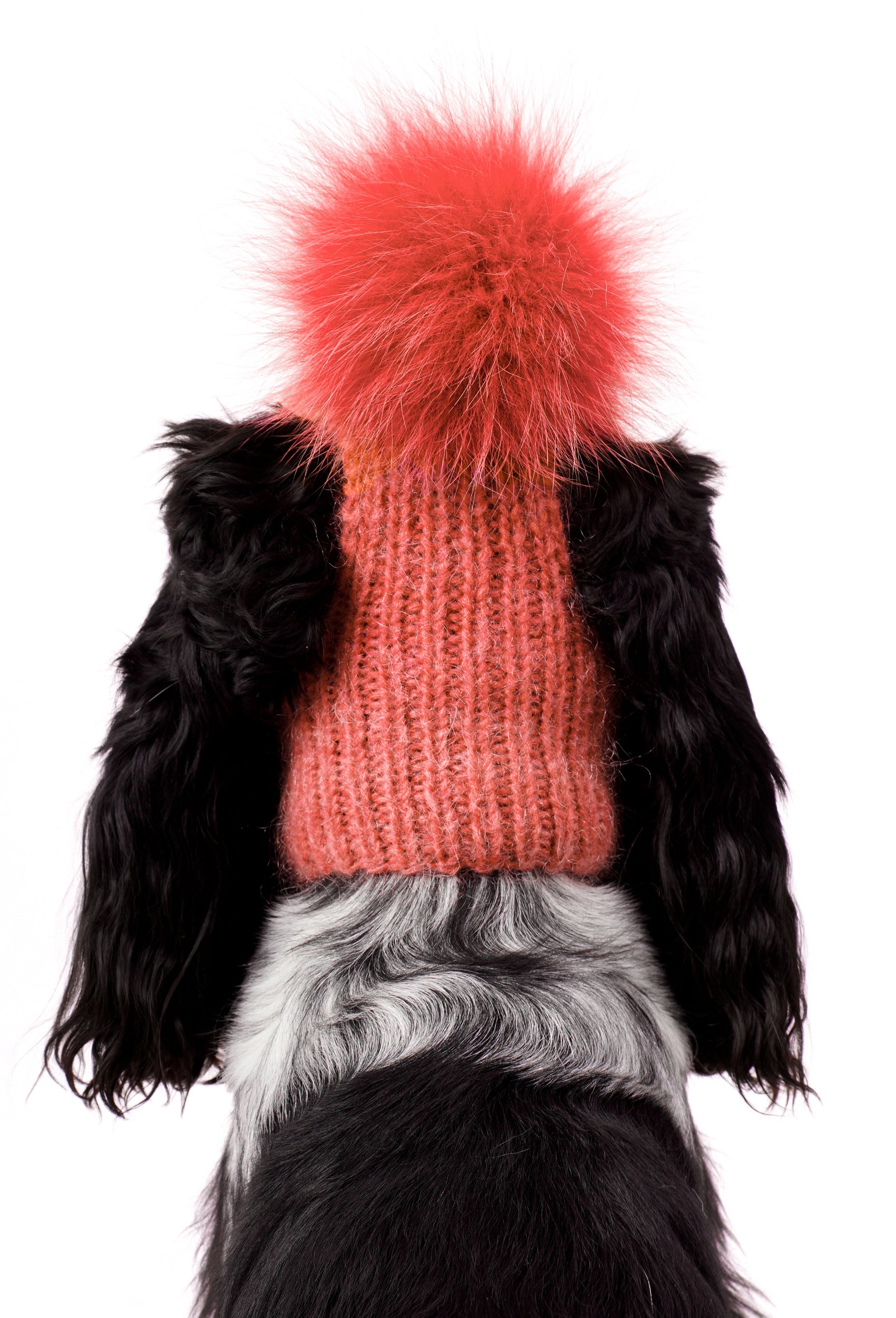 Hand-Knitted Batik Coral Pom-Pom Dog Hat