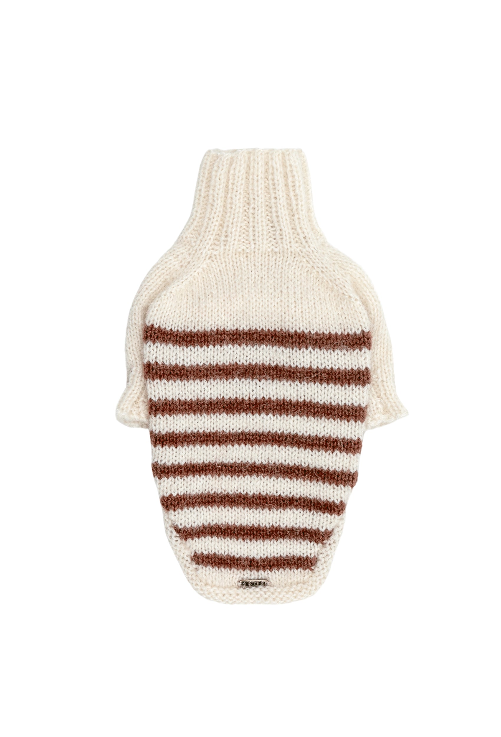 Introducing the FOURAMOUR Handmade Cream-Brown Striped Knit Sweater, designed to reflect your dog's luxurious comfort and stylish flair. Carefully crafted using traditional knitting techniques with a modern touch, this sweater is ideal for chilly days, combining warmth and elegance.