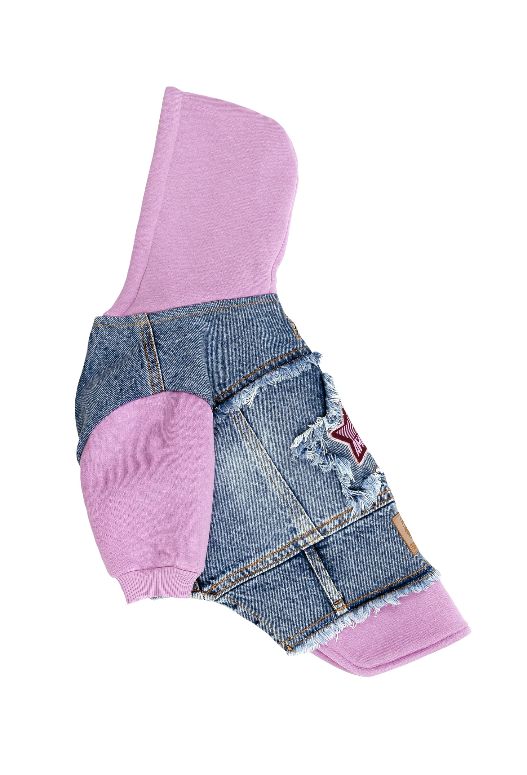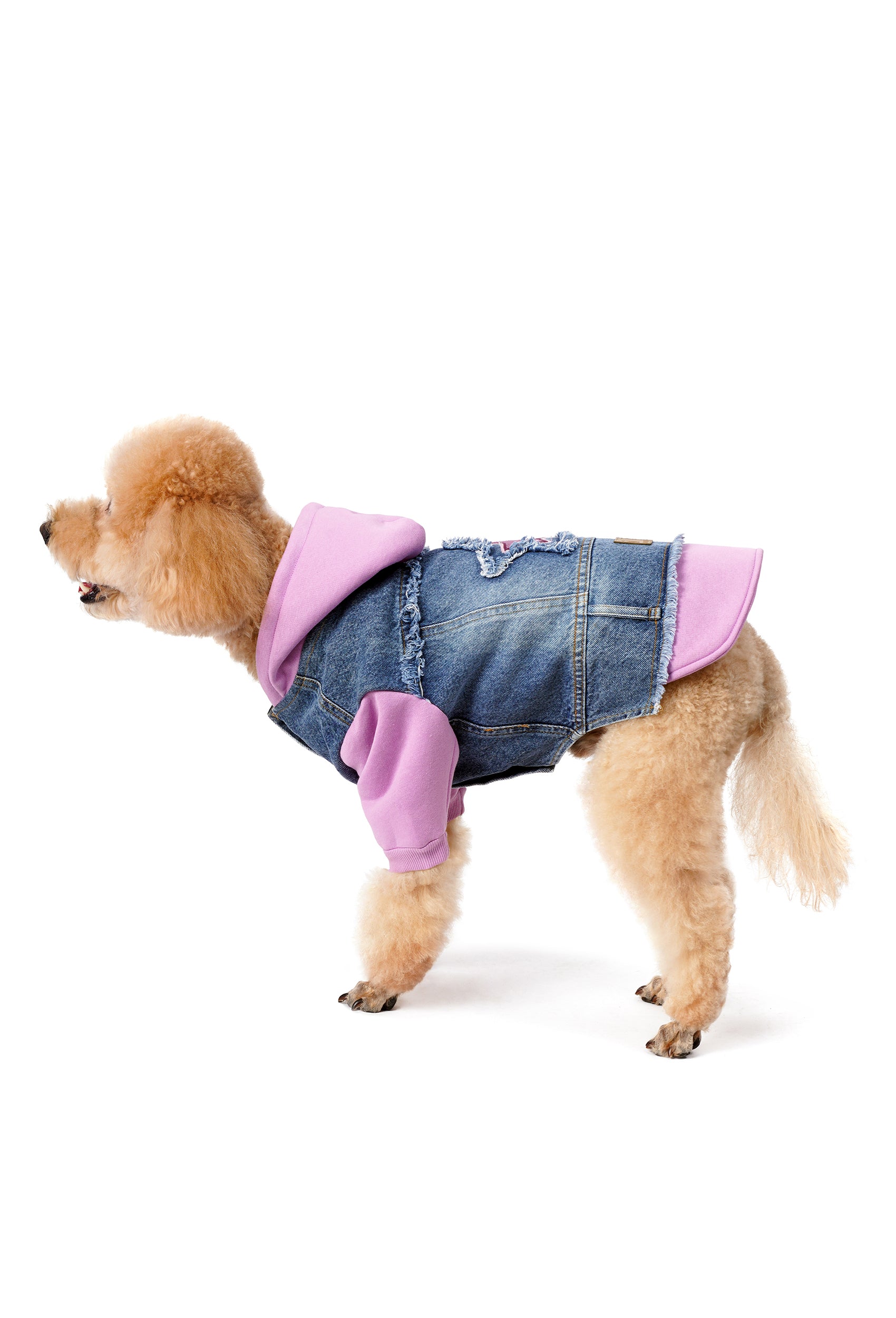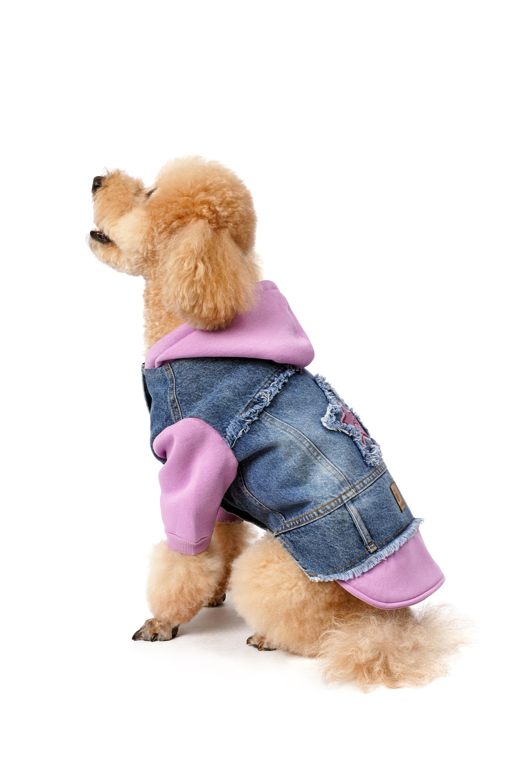Evcil dostlarınızın stilini FOURAMOUR Açık Mor Kapüşonlu Orta Kar Yıkama Kot Ceket ile zenginleştirin. Klasik denim, püsküllü detaylar ve yumuşak penye kumaş kombinasyonu, köpeğinizin hem şık görünmesini hem de rahat hissetmesini sağlar.